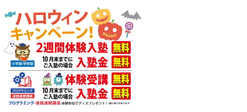 | テキストプログラミング | 小・中年生 | 9,900円 | 50分 学習塾と同じ時間割 |